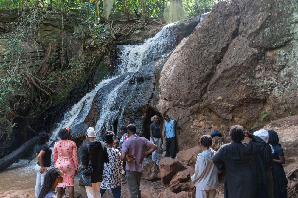 ↑這是在肯尼亞阿伯德?tīng)枃?guó)家公園拍攝的卡魯魯瀑布(1月31日攝)。