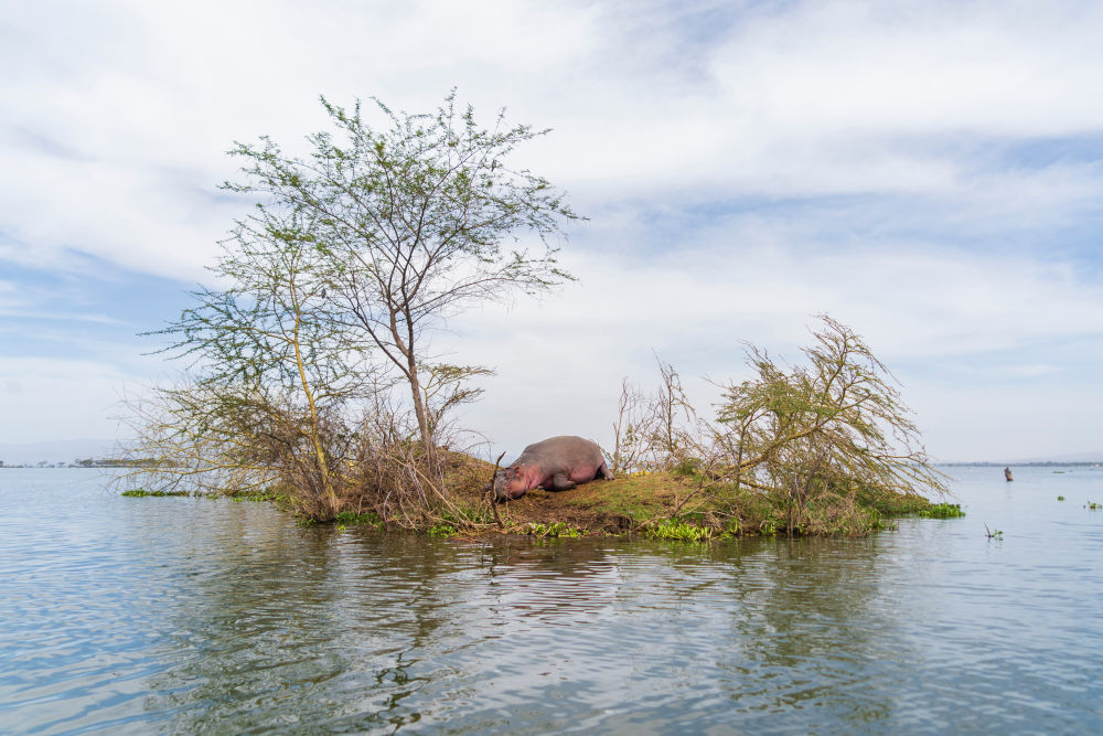 ↑在肯尼亞納庫(kù)魯郡,一只河馬在奈瓦沙湖中一座小島上休息(2月1日攝)。