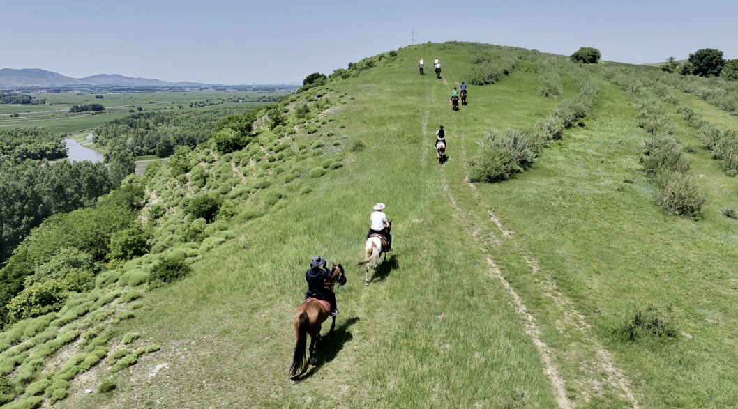野騎營(yíng)地里,工作人員正細(xì)致地為游客挑選駿馬、整理鞍轡,耐心講解著控馬的要領(lǐng)。游客們有的騎著馬在草甸上慢慢行走,任憑春風(fēng)拂過(guò)臉龐;有的則放開(kāi)韁繩,在開(kāi)闊地帶策馬小跑,體驗(yàn)馬蹄起落間的痛快。