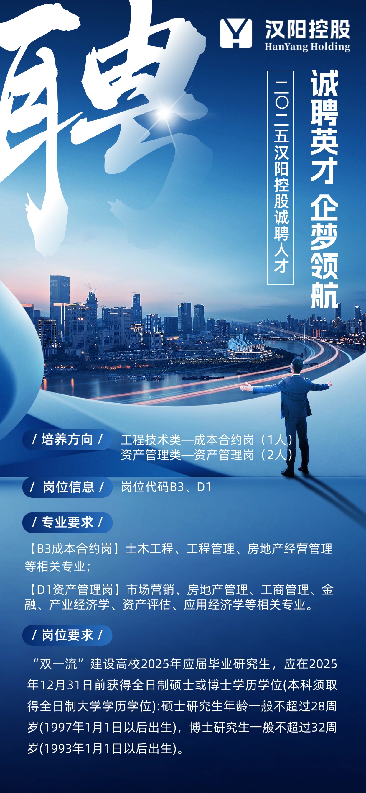 為進(jìn)一步加強(qiáng)漢陽(yáng)區(qū)區(qū)屬國(guó)有企業(yè)領(lǐng)導(dǎo)班子后備隊(duì)伍建設(shè),為宜居宜業(yè)新漢陽(yáng)建設(shè)提供有力人才支撐,現(xiàn)面向優(yōu)秀高校畢業(yè)生開(kāi)展2025年度區(qū)屬國(guó)企管培生招聘工作,具體事項(xiàng)公告如下: